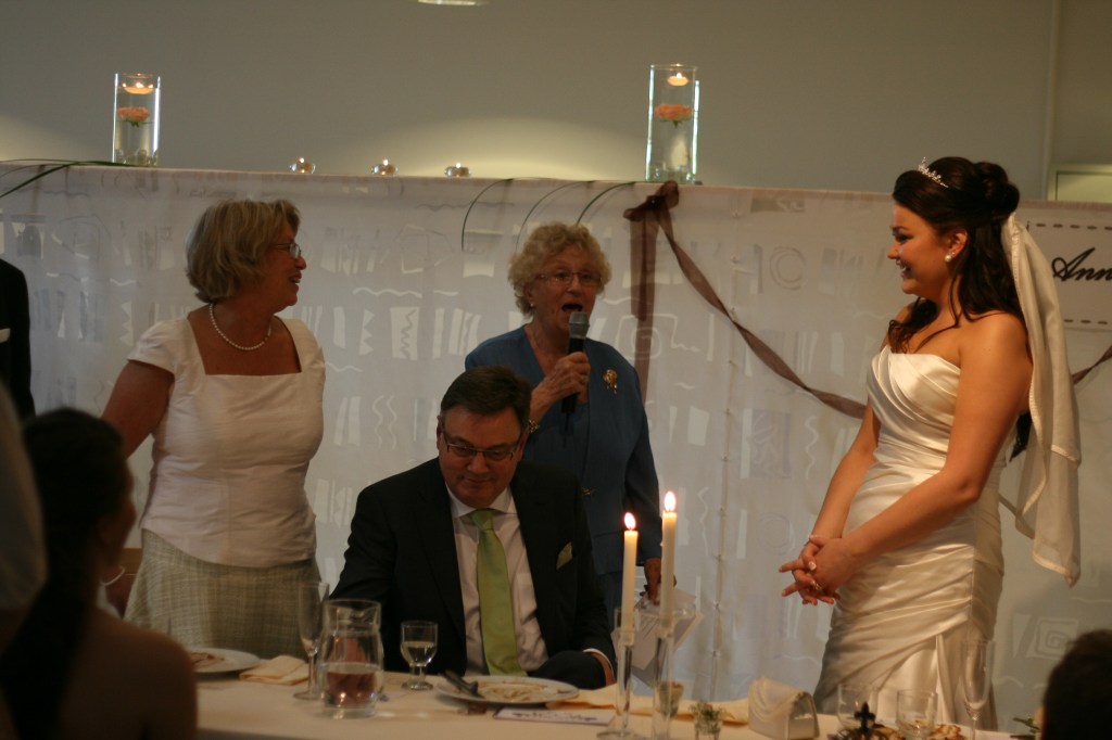 Mormor tar kommandot på vår bröllopsfest med sin myndiga klara stämma.